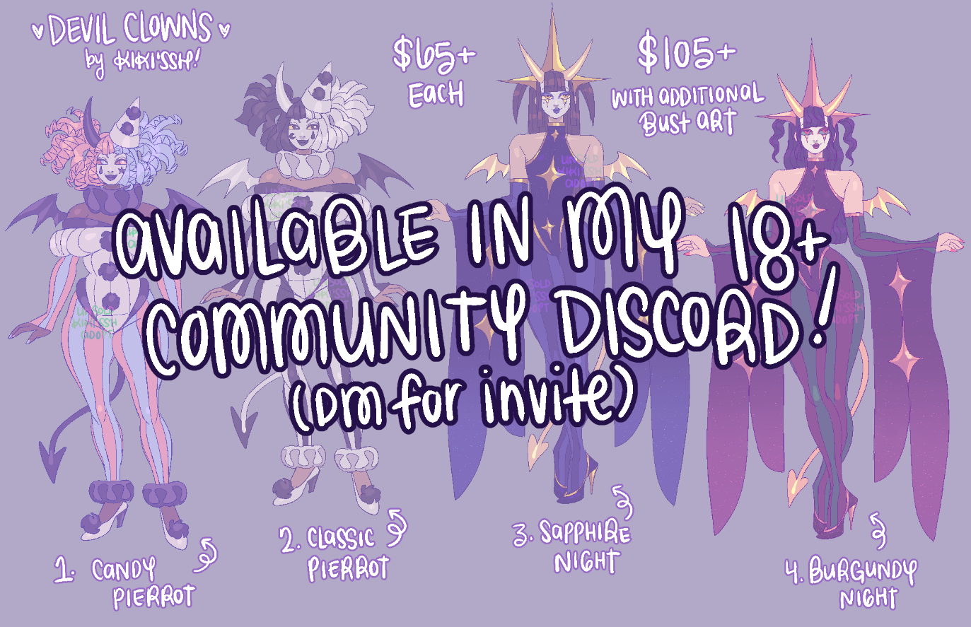 Devil Clowns Sept '25 batch now available in my 18+ community discord! DM for invite if you wanna grab one of these babes, or if you just wanna hang out with us! ♥