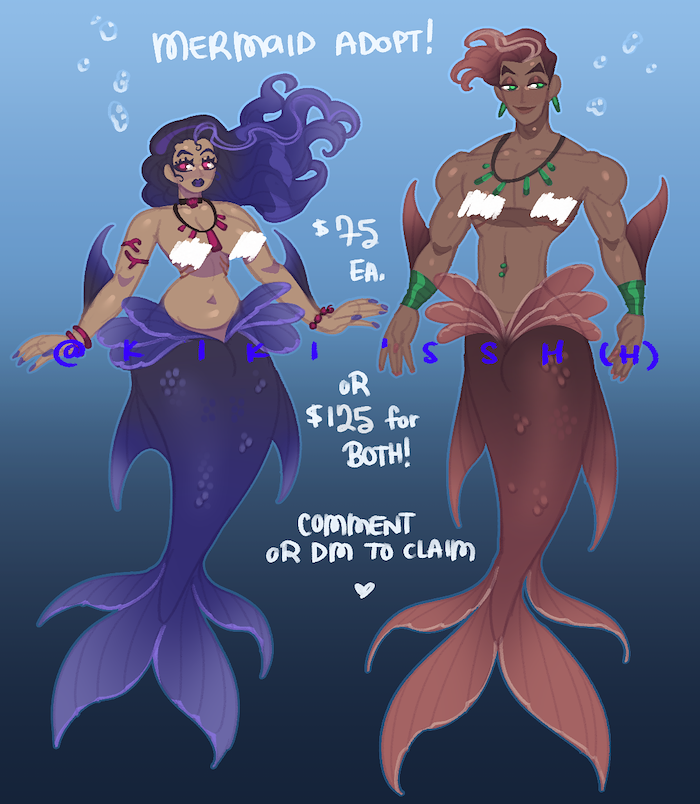 Mermaid Adopts! 75ea or both for 125! ♥♥♥ DM to claim!